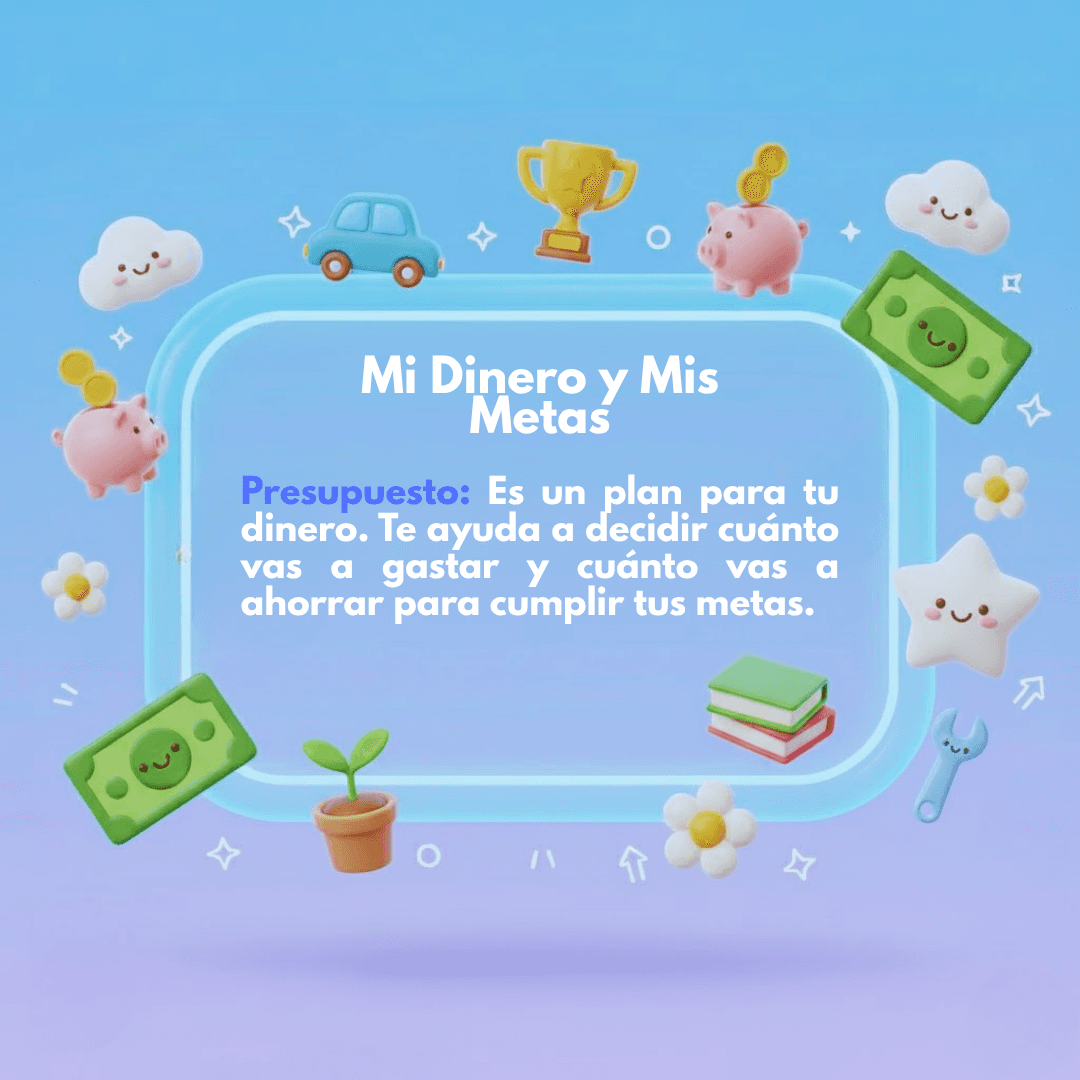 El plan para tu dinero se llama presupuesto. Hacer un presupuesto es decidir de antemano a dónde quieres que vaya tu dinero: cuánto gastarás en tus cosas favoritas y cuánto guardarás para tus metas.